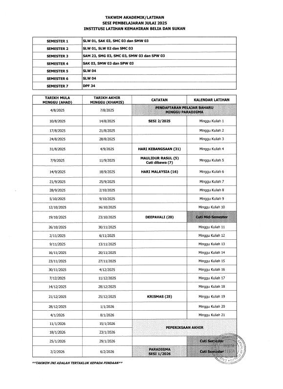 Pemohon mestilah memenuhi syarat tambahan yang ditetapkan mengikut bidang pilihan, sekiranya ada. Syarat ini bergantung kepada keperluan khusus setiap kursus bagi memastikan pemohon benar-benar sesuai untuk mengikuti latihan dalam bidang tersebut.