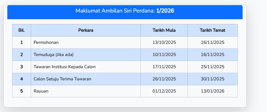 Tempoh Pengajian 15 bulan
