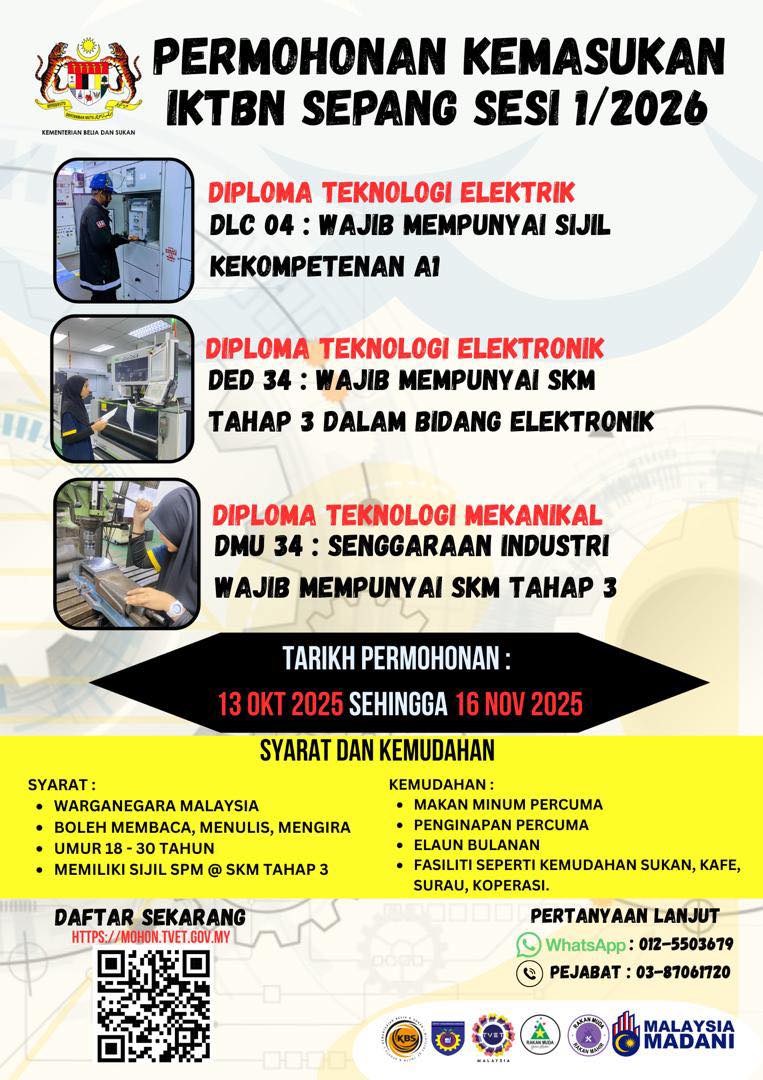 Tingkatkan kemahiran anda tanpa menjejaskan rutin harian dengan kursus separuh masa IKTBN Sepang — fleksibel, praktikal, dan direka untuk membantu anda capai impian walau sibuk bekerja.